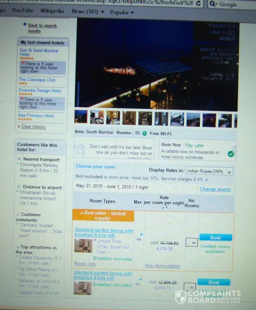 I have found Agoda practicing a very subtle form of misleading advertising. When you go to their website they advertise rooms on the basis of standard and deluxe rooms and in the column for max occupancy it shows two heads (see screen shot attached). But once you click the bookings the voucher comes out for single occupancy. It is in the finer print and you may not notice it until you arrive in the hotel and they point out that you have booked a standard room for single occupancy. The hotel will demand you pay more for double occupancy. This happened to me recently with Sea Palace Hotel in Mumbai. When I investigated it more I found out that the price I paid for supposedly a double occupancy room is not a discount at all. They showed that the real price is about Rs 10, 000 and get over a 50% discount by paying Rs 3900. But when I arrived there I found that the counter price charged on their rate card for this room is Rs 4000! So no discount at all. In fact they demanded that I pay Rs 1200 extra for double occupancy but provided the same room that was originally allocated to me which was run down and dirty. Also the page for the hotel showed at the top a nice picture of a sea view rooftop restaurant giving you the impression that you will be having your breakfast and the meals up there. But this is not the case. The real restaurant of the hotel is in the ground floor with no views at all. The rooftop restaurant is with different management and it is open only in the evenings when it is crowded with young Mumbai couples on a date. The building is real run down old building (see picture) but the picture used in the webpage gives a completely different impression of the building. Agoda needs to have a hard look at its business ethics and also those of the hotels they partner to promote.