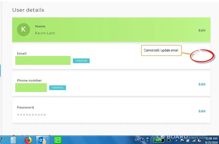 THERE IS NO TOOLS SHOWING 'EDIT' BESIDES THE EMAIL. BUT THE 'EDIT' ARE SHOWN AT OTHER BUTTON ie. PASSWORD, PHONE NUMBER AND ETC.