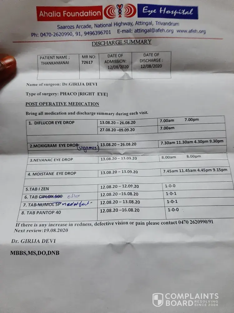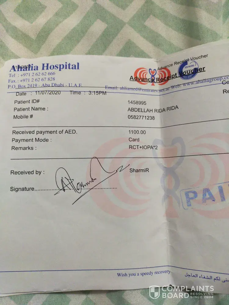 Read full complaint31 Ahalia Hospital / Ahalia Group Complaints