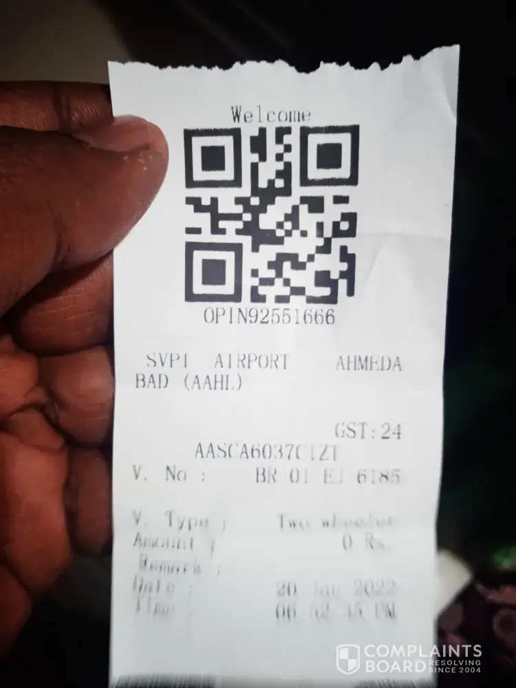 Hi, I have taken the flight from ahmedabad domestic airport and parked my bike in parking at 6:52 PM on 20 Jan 2022. And today I.e 23 jan 2022 at 11:00 AM, I took my bike back and paid 940/-.