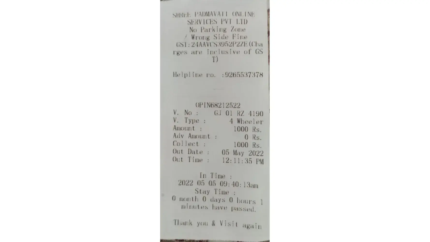 Desired outcome: All parking receipt should be of the same vehicle which it belongs to.