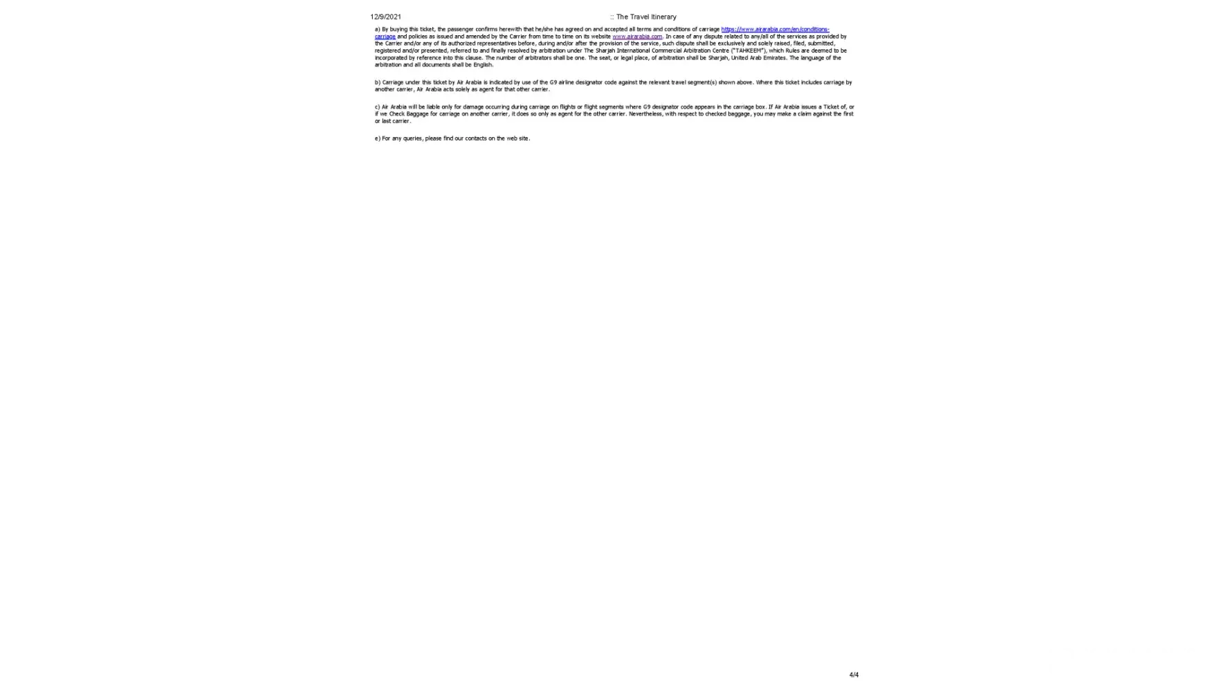 Email Two I have been very transparent while sharing all the valid documents with regards to my return Air ticket refund claim. Which makes it very clear by default that I am not on the route any where which ever destinations Air Arabia serves the Air travel Journey. I am left with no other options then to request for refund claim once again.