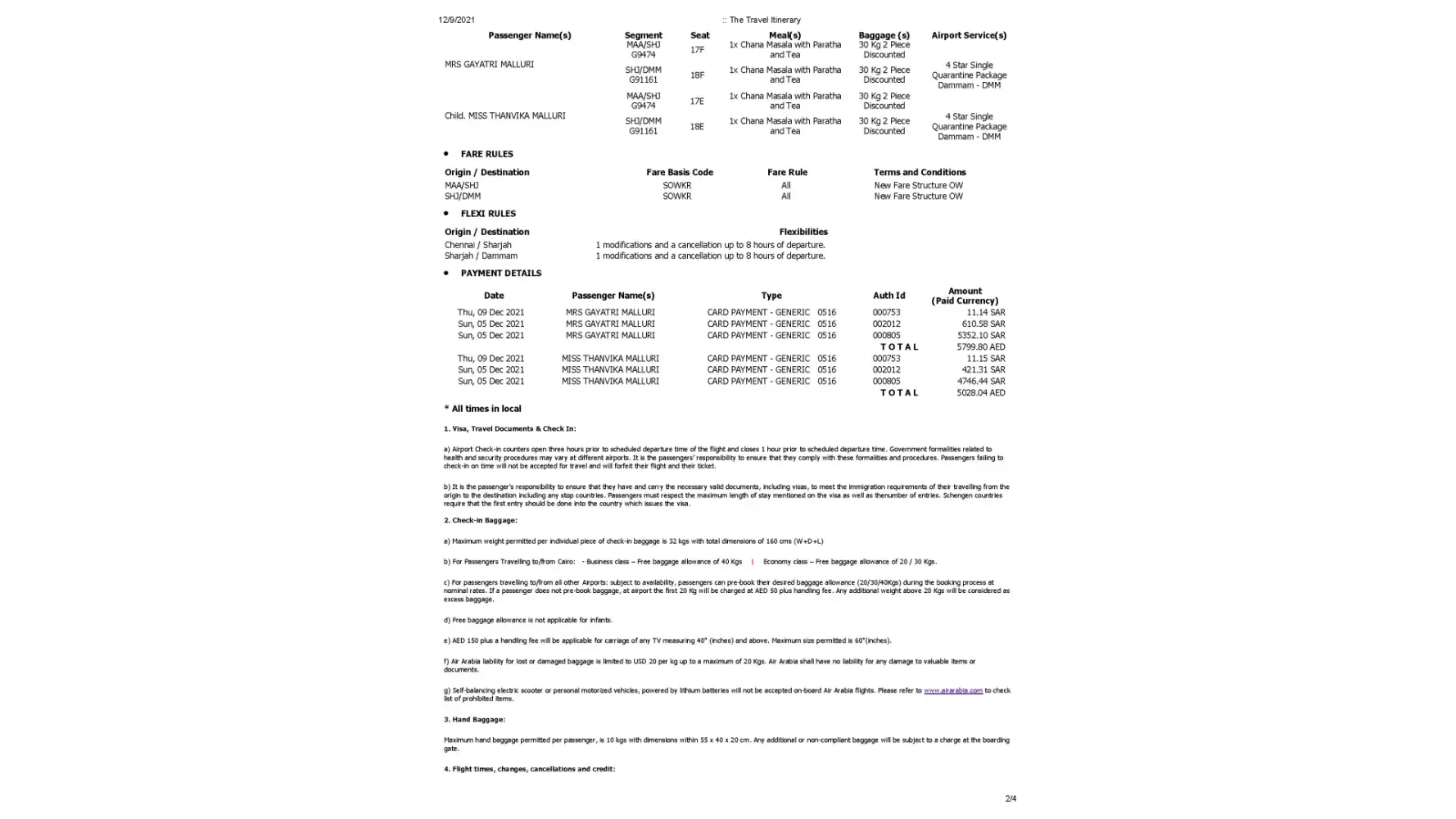 My family is traveling from Dammam to Delhi via Sharjah dated Dec 03 2021.