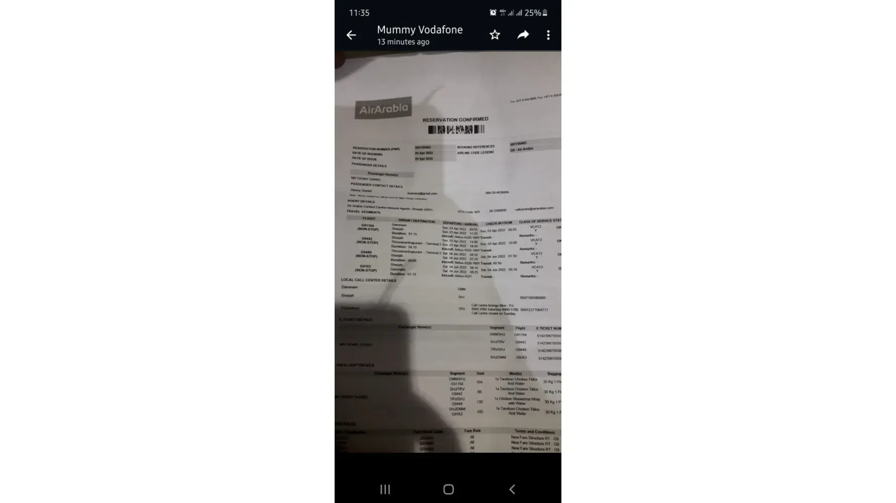 This was the most horrible flight in my life. It was a nightmare. I booked a flight from ahemdabad to nairobi through Sharjah with this airline. They boarded me on the flight to Sharjah without a problem but in Sharjah, they denied me. The reason they gave me was that I did not have a vaccination QR code as per Nairobi government travel rules and I am unable to travel nairobi. Staff didn't help me and guide me and later on I was briefed by them that it was just hardly 2-5 min procedure. I had to spend one whole day and one night at Sharjah airport bunkers. I miss my important business meeting at nairobi. After this incident from next day Air Arabia changed thier policy and do not ask the QR code from any passengers. Unfortunately , we lost important business meeting, time and money. I request for compensation.