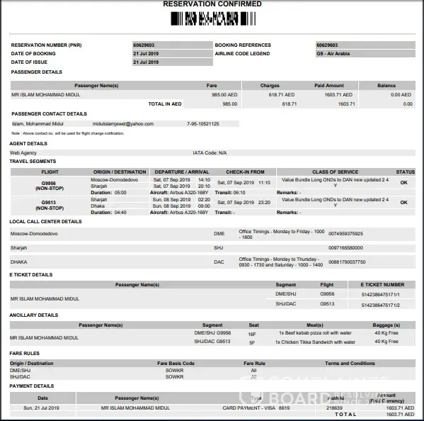 Date of booking 21 jul 2019 airline code legend g9 - air arabia