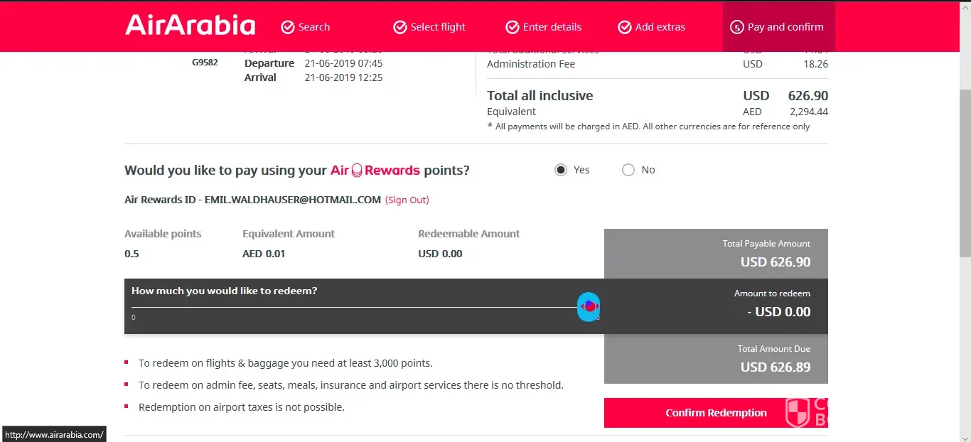 Air Arabia - Booking Confirmation ID - AAH0029044