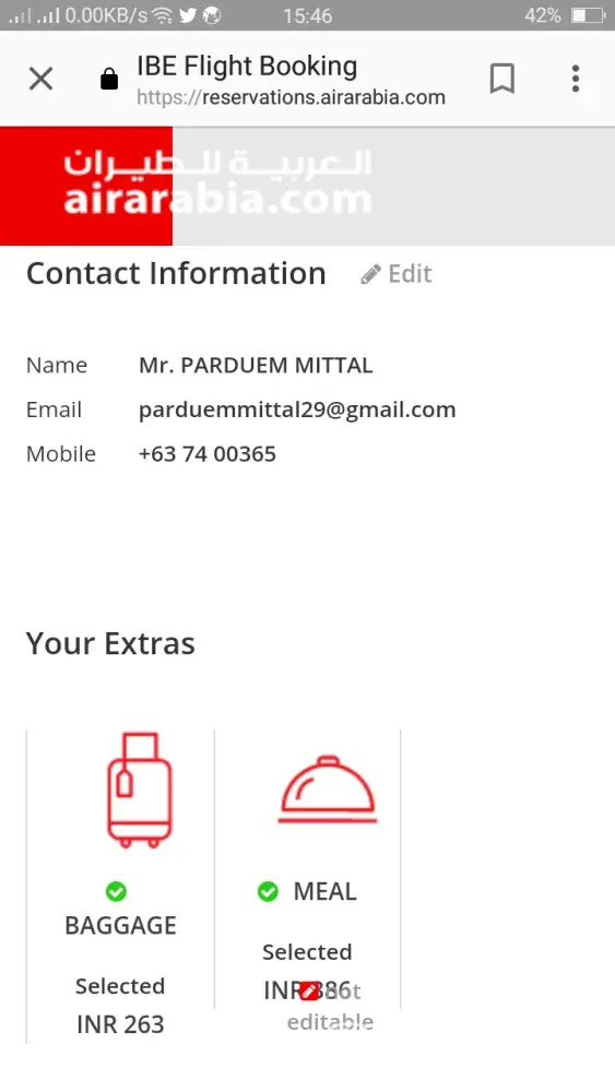 I booked my meal in a flight of 27/01/18 of cost INR 386 .