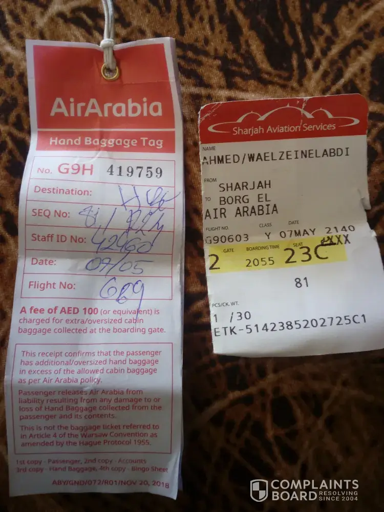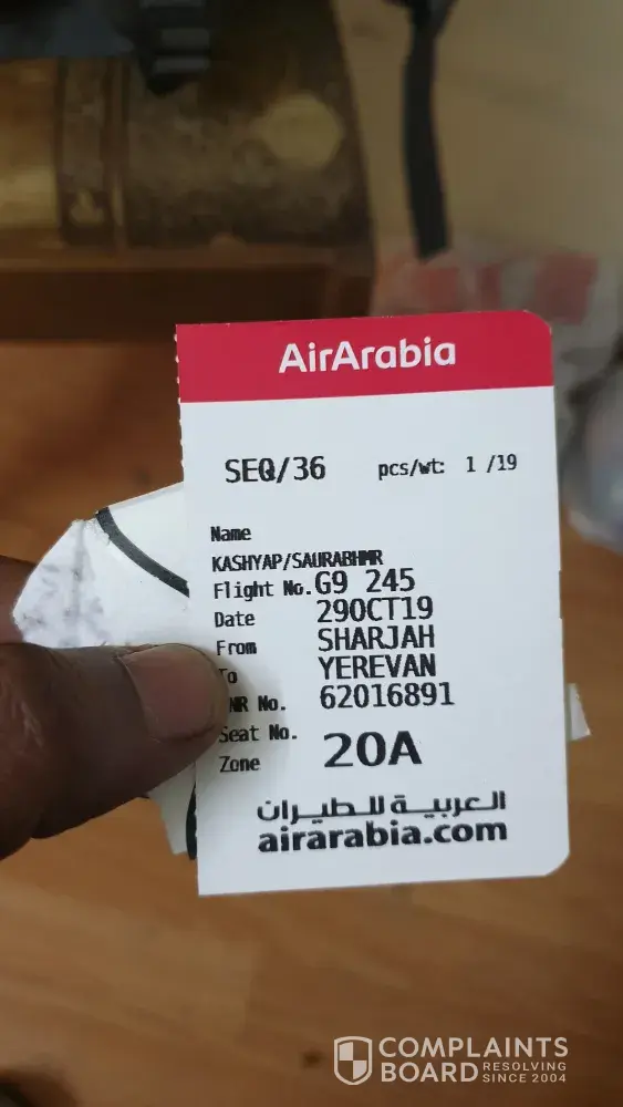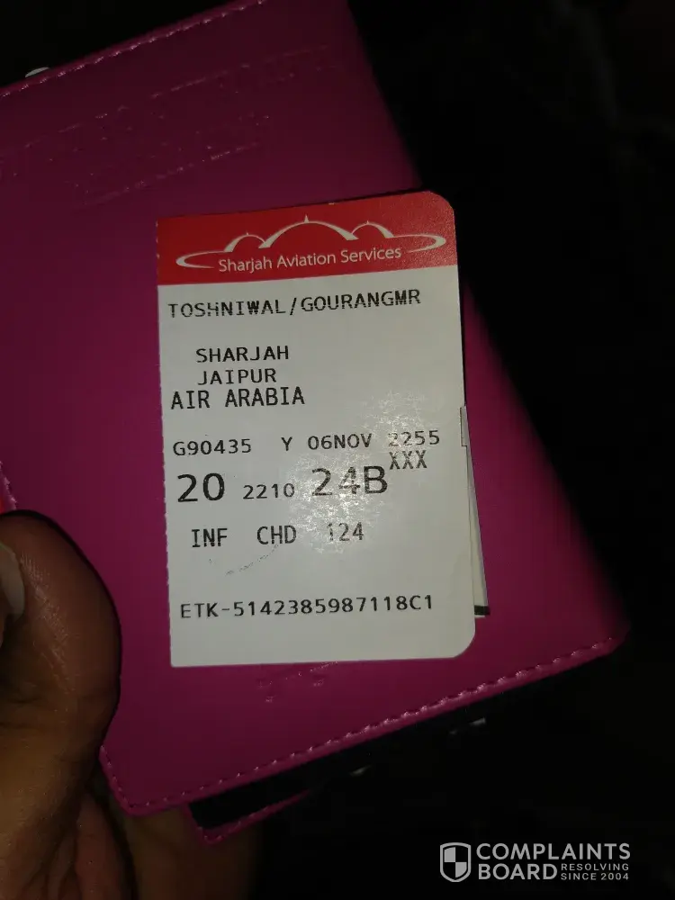 I was travelling from Goa to Sharjah by Air Arabia flight on 19th May 2019.