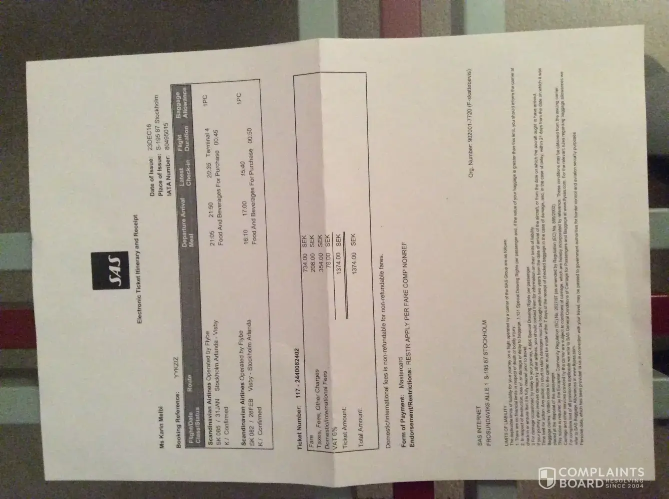 It all became very stressful, expensive and inconvenient, trying to find a hotel and book a new flight, in the middle of the night. I hope you will replace the costs I had to put out.