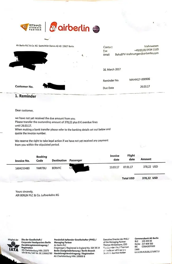 Now I want you to tell me what did happen? Why it did happen? Why I was told I can fly with air berlin anymore?