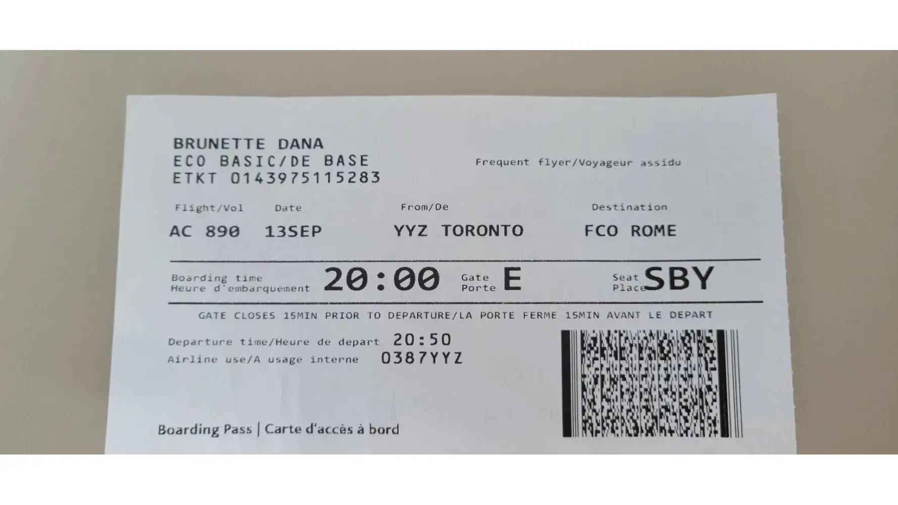 On September 13 2022 myself and my parents (Dana, Sandra and Gary Brunette) had a flight booked on a direct flight from toronto to rome italie AC890 dep 20:50. Then we were bumped.
