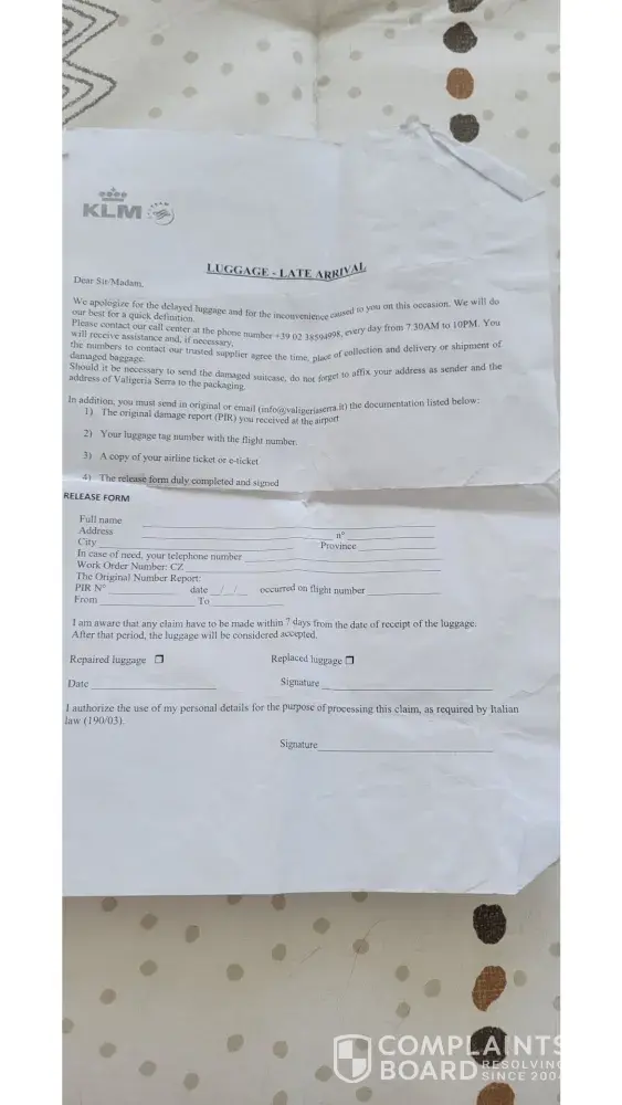 Desired outcome: I want a monetary compensation for all three of us, related to lost luggage and inconvenience