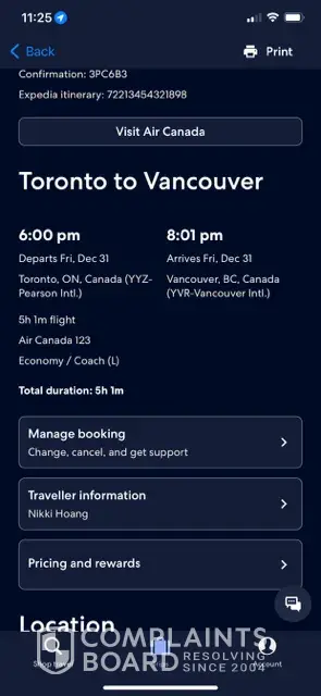 My boyfriend purchased a direct ticket for me to spend the New Year together which cost $1100 from Toronto to Vancouver on Dec 31 on flight AC123