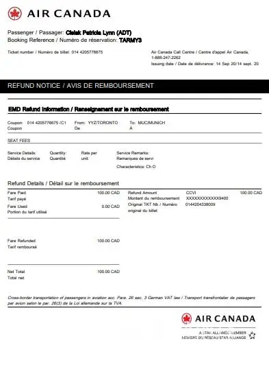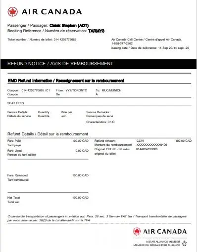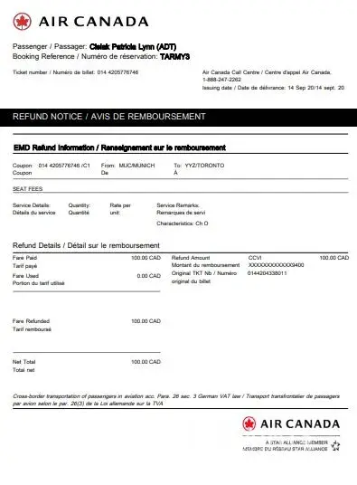 I am writing regarding a recent partial refund from Air Canada through Expedia.ca.