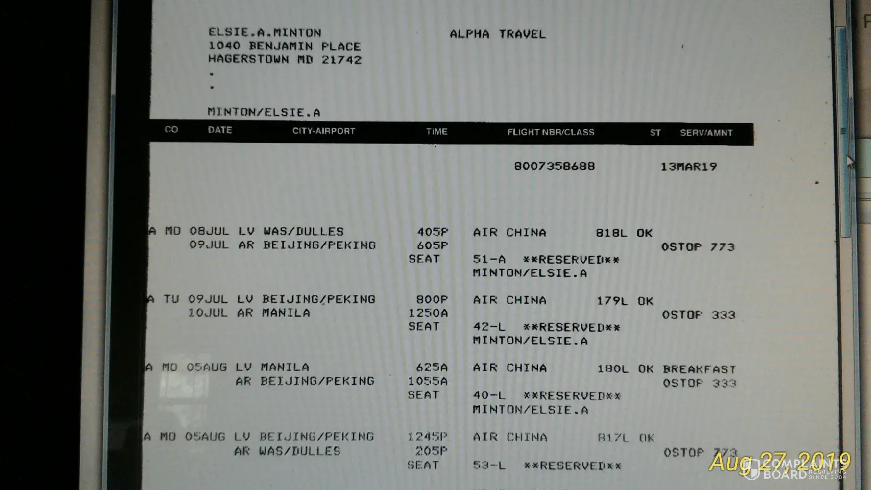 In Guangzhou he was supposed to board air chine ca 1722 to Hangzhou but this flight was cancelled and was instead put on flight CA1726 to Hangzhou.