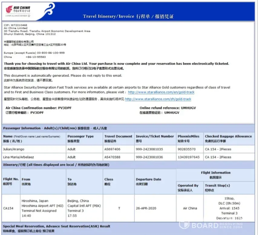 I have been in contact with the following person in Hangzhou which hasn't seemed to be any help either: [protected]@airchina.ae