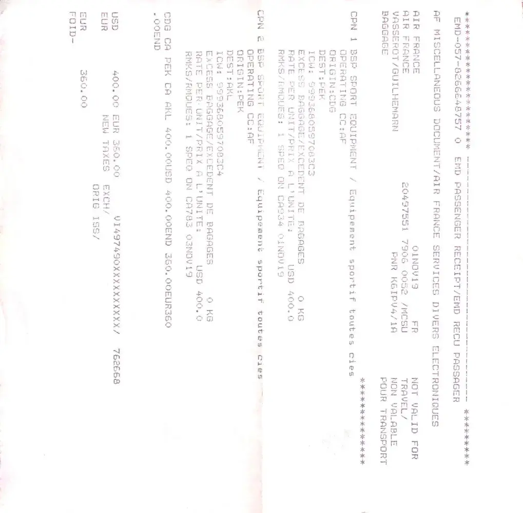 I had a return flight from Paris to Auckland yesterday and I have not been allowed to board the flight unless I pay 360 euros extra fees (400 USD) for my baggages (receipt attached).