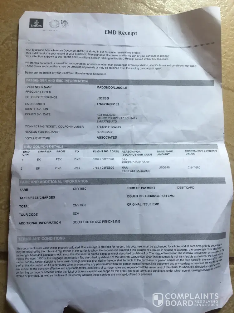On February 7th I flew from Hangzhou to Beijing using Air China. My luggage had an access fee, Air China decided to charge me a excess fee for my entire trip ( Hangzhou - Beijing - Dubai - Johannesburg) instead of just Hangzhou to Beijing. In Beijing I was getting onto Emirates. I gave Emirates the proof of access payment from Hangzhou and it was never accepted. I proceeded to complain to Air China in Beijing and I was told it's a Hangzhou error. I was given a contact number that was no use to me to call Air China in Hangzhou. Which I did and the number was invalid. I did my research and finally got ahold of Air China in Hangzhou, I told them what had happened and they told me they will do an investigation. Fast forward a month later. I still done have my refund from Hangzhou. I have laid a lot complains and I'm not getting assistance with my refund. I had to pay Emirates a full amount or I would have missed my flight. The inconvenience cause by Air China in Hangzhou and the lack of assistance is really unprofessional.