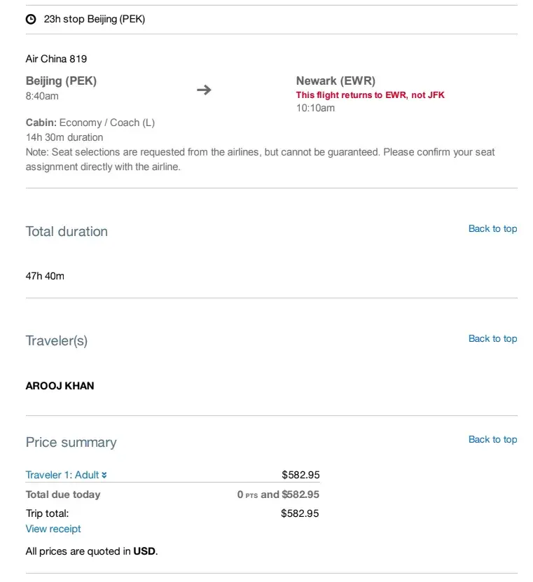 I was traveling from ISB to NYC on Oct 20, I had layover in Beijing but I missed my connecting flight as I was sick and couldn't reach the gate on time and so I missed my flight and there were no announcement made at Beijing airport even though I was in the Terminal 3 departing area and looking for gate number.