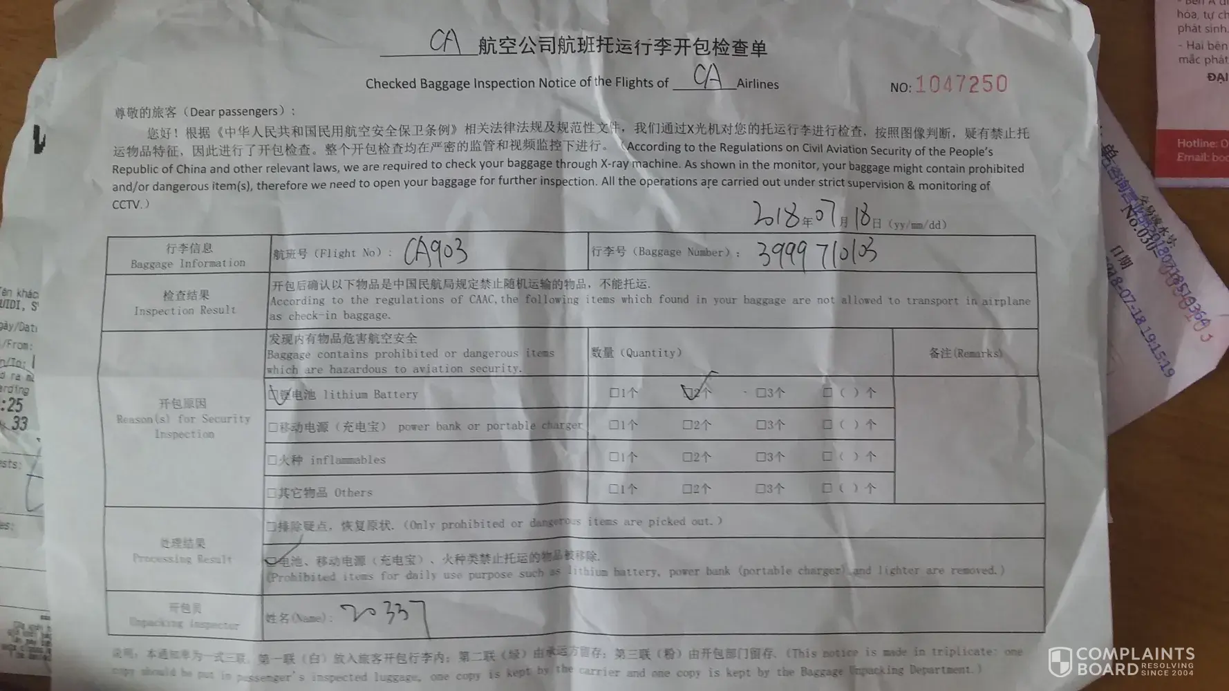 The staff just rudely replied that they dont take any complaint in writing and neither will they offer a complaint paper to write anything on it. But rather just suggested to e-mail the complaint to Air China office.