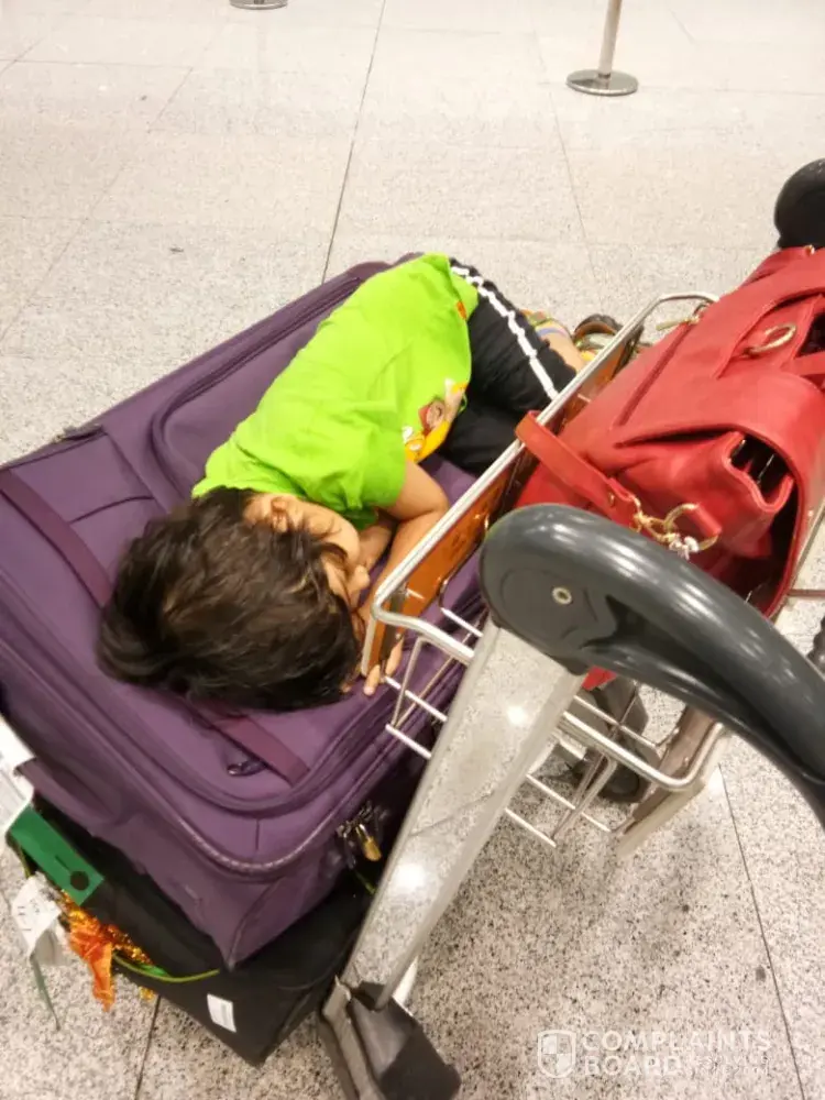 f) Requst for early exit out of Beijing: The way the treatment was done to my family (at an unknown and unfamiliar location to them), it was best to leave Beijing Airport as soon as possible. At around 5 a.m Beijing time, my wife kept requesting for alternate flight to Hongkong. She was asked to go from one counter to another and this is when she had baby with her along with 2 luggage bags plus handbag and purse.