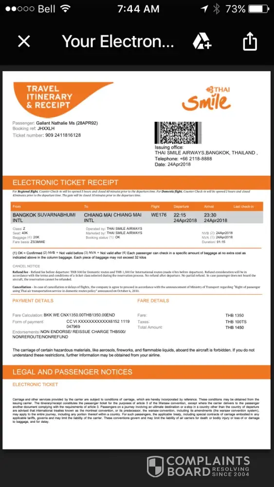 Additionally, this change put me to land in Hong Kong after midnight instead of at 8:50pm.This unanticipated change cost me a lot of money and problems at work upon my arrival.