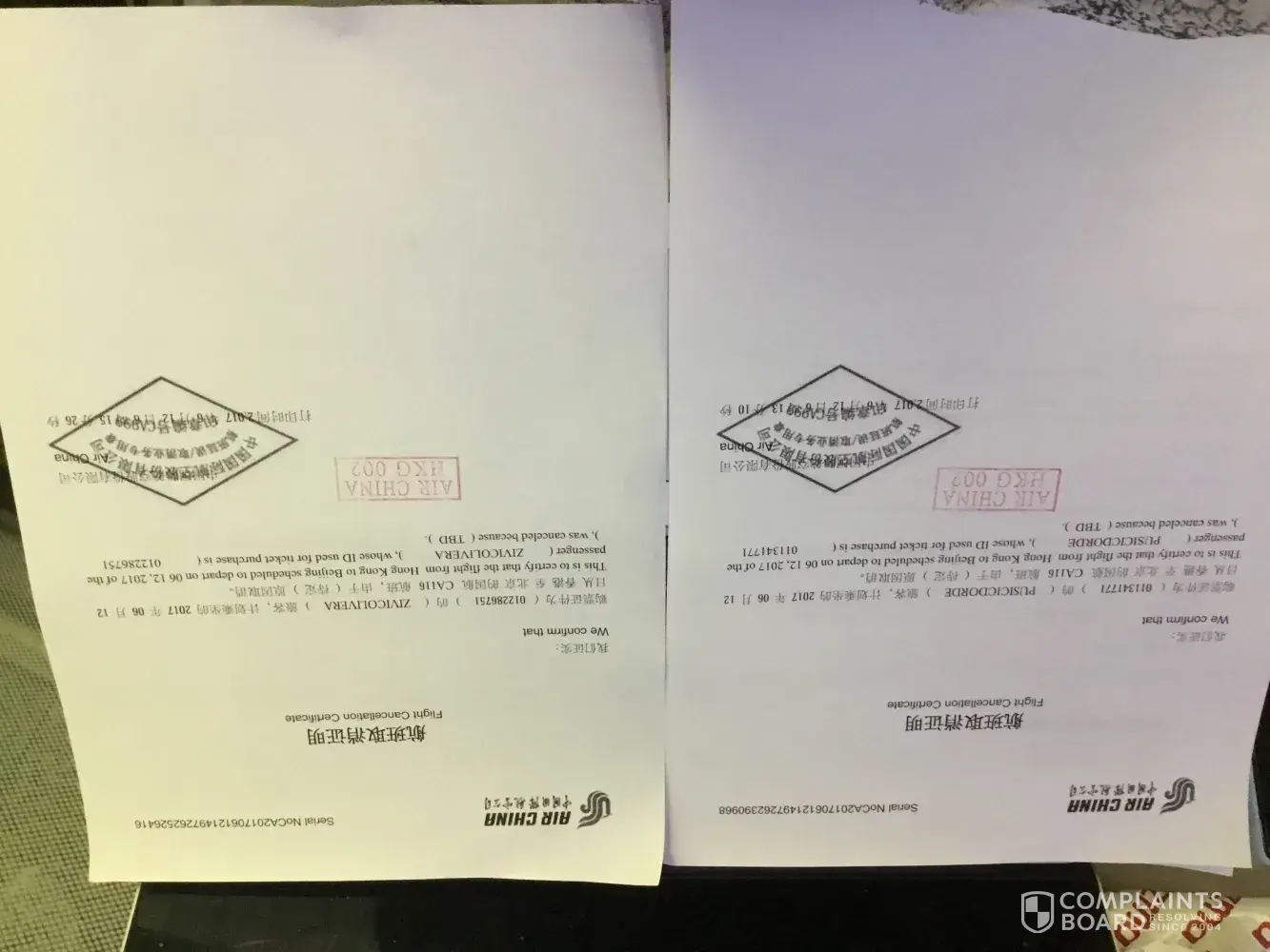 æ‚¨å¥½ï¼Œåœ¨è¿™é‡Œï¼Œæˆ‘è¦æŠ•è¯‰air china国航(ä¸å›½å›½é™…航空有é™å…¬å¸ï¼‰ï¼Œäº‹æƒ…具体情况如下: