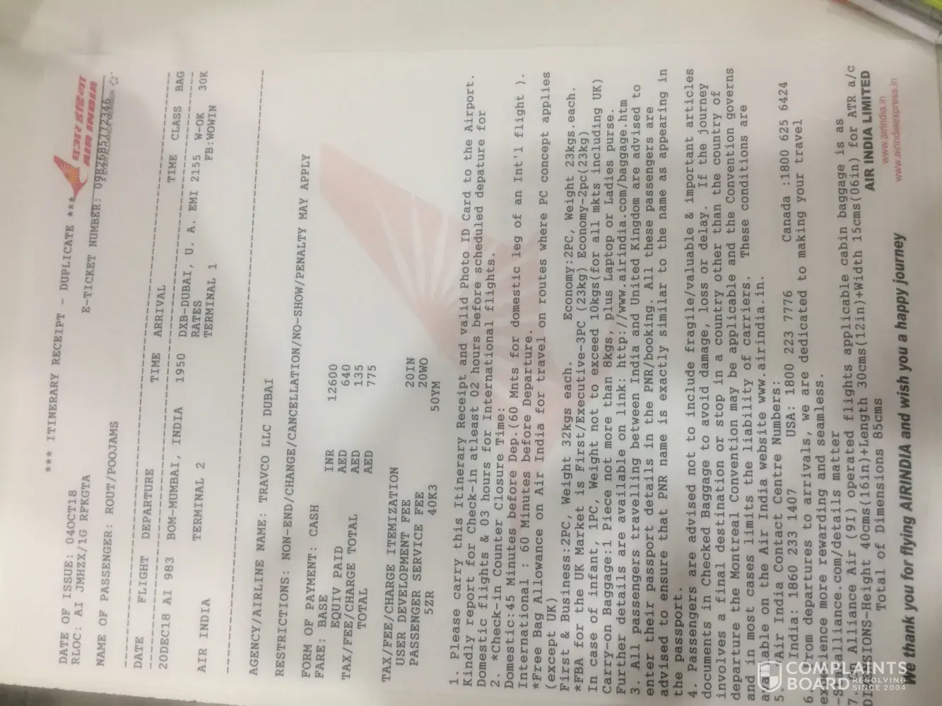 I want to bring across the point that, the first transaction that happened was correct but non generation of ticket is erroneous on the part of the Air India Authorities and I ultimately landed up spending doubble the amount for the fare.