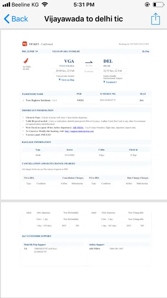 I am yeso raghava sai charans sister.. I want to complaint regarding flight cancelation. Today at 8:40pm I have flight from vijayawada to delhi. Before 5hrs of departure there was a msg that flight is cancelled, tomorrow I have international flight. Now instantly I need to book flight and that price of indigo which I booked is very high. And moreover I need to pay penalty for my luggage which almost 10kgs. I booked taxi from vijayawada to hyderabad that is also expensive... Because of your flight cancellation, I should pay extra amount for other penalty (extra money for flight ticket, luggage, taxi) of nearly 10-12000. I want you (management of air india) to refund my air india ticket money along with those penalty.. As it is your problem. How can you cancel flight before 5-6 hrs. Any how I want money back. I kept all proofs (tickets). People choose air india because of extra luggage now I ishould pay extra amount for 10kgs. I want to be refund money along with penalty amount in 2 -3 working days.. Otherwise its shame of you and your airlines..