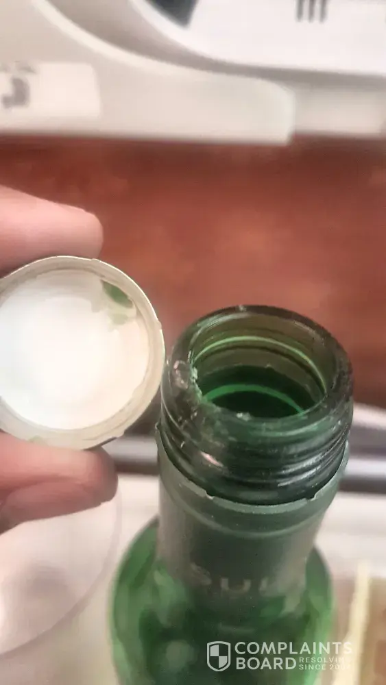 When I looked at the bottle I was horrified to note the neck of the bottle was badly chipped and quite possibly there was glass in the bottle too.