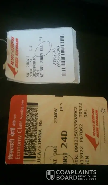 After I had raised my voice in the counter, I was given a new ticket on the next day to travel (booked by the executives from the same ticket counter in AI 310 flight, Departure on 15th December 2016).
