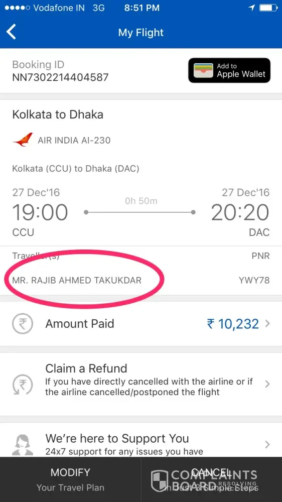 ON the 26th a evening I booked a ticket from Kolkata Airport to Dhaka Bangladesh, by mistake there was a mistype in my spelling of the last name. Now since it is an International flight the spelling of my last name is now different in my Ticket & my passport. I than called both MakeMyTrip, where I had booked the tickets both The Airline Company & Makemytrip the only way to amend the last name is to cancel the ticket & book it again. But since the ticket was non refundable so I will be not given any refunds.