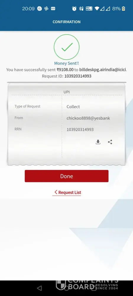 Air India - Refund not received