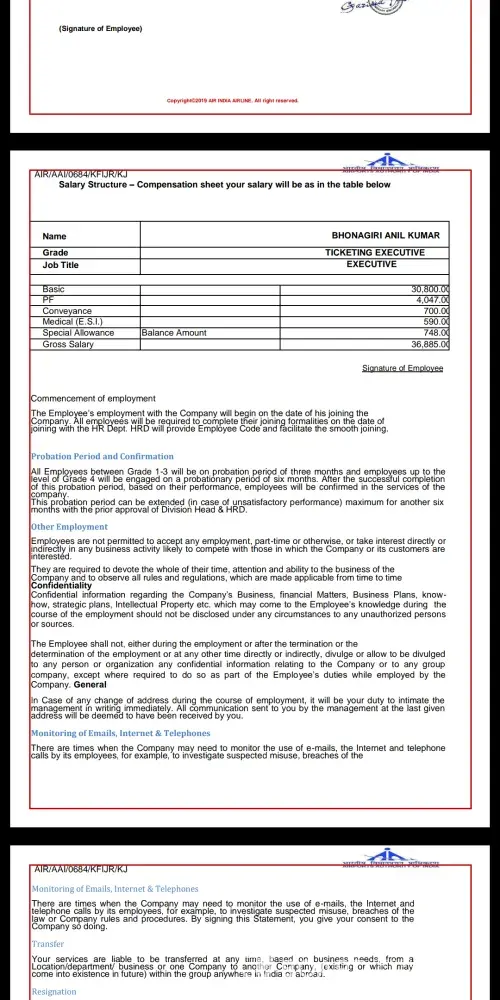 Then he told me to pay (2500) and sent receipt or screen shots of online transactions.so i believed him then sent rs.2500 via Google to above mentioned account. After that i asked him letter. Then his mind changed again he asked me verification Processing fee @4600 and it's also refundable in 1st month of salary, so i had paid rs.@4600 via Google pay and he said to pay for providing a punching card and employee id card which is issued by my name. This amount is refundable after three months.i will pay @(11, 700) rupees, he said don't worry we air india do not do such thing pay till today i will dispatch letter today. I asked him where letter, I got a offer letter.oct 1st is my joining Date. Now i call To Munika mam.she will not be responding my calls. So what i will do? Am i lost my (2500+4600+11700) rupees, totally 18, 800rupees. How can i return back this amount?