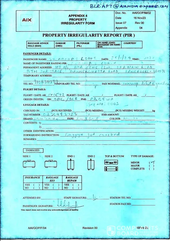 Compensation for Suitcase Damaged during Transit - IX1592, 25 Jan 24, PNR-P2B57P