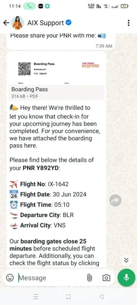 They asked me to visit Air India counter outsided Terminal 2 for further enquiry and there was a person who asked me to call customer care [protected] which is only IVR and no human involvement to address the concerns