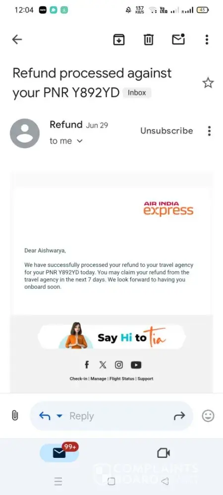 Read full complaintAir India Express complaints: history and resolution overview