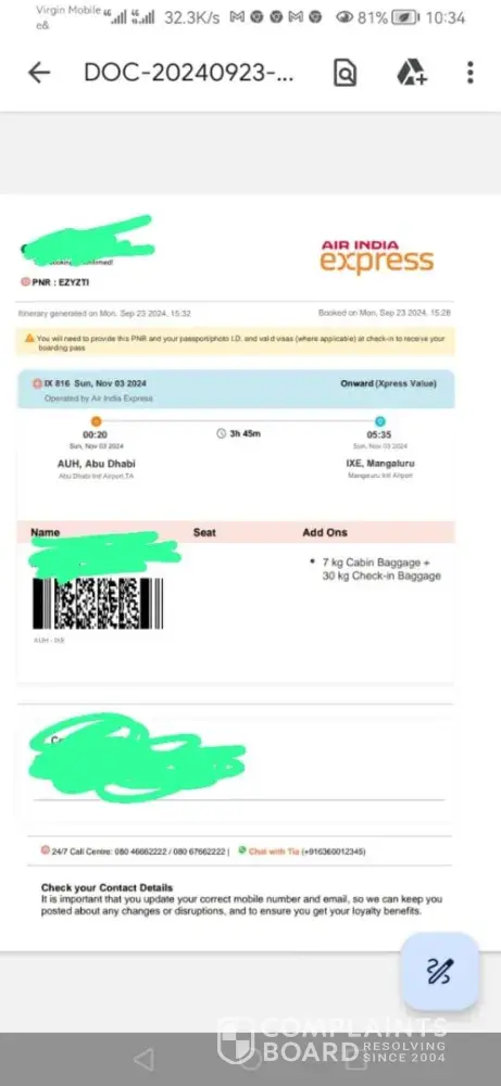 Read full complaint and 1 commentIs Air India Express Legit?