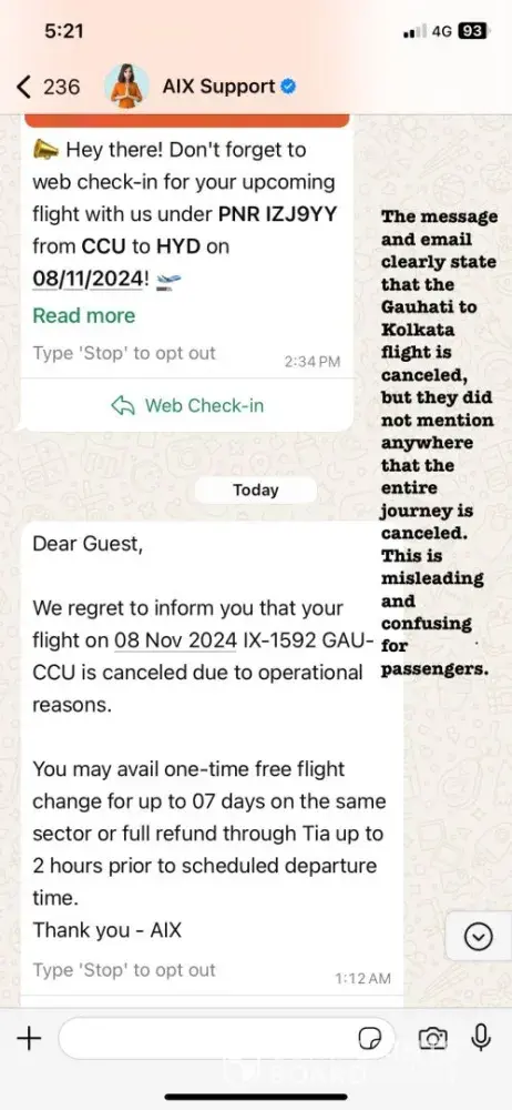 I am writing to formally raise a complaint regarding the cancellation of my recent booking (Booking ID: IF24110162996695, PNR: IZJ9YY) for flights from Guwahati to Hyderabad scheduled for 8th November 2024. I am extremely dissatisfied with the series of miscommunications and lack of clarity from your customer support team, which has resulted in additional...