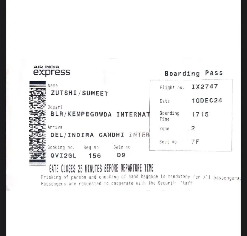 This is for our flight in 2nd Jan 2024 from delhi to Bangalore at 7.50 am.