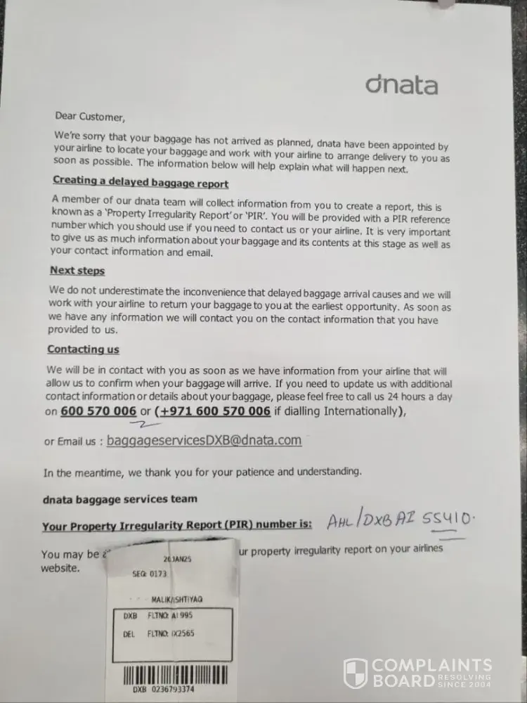 i have baggage's Missig .I was travelling from Jammu to Dubai via Delhi on air India express flight with following details .