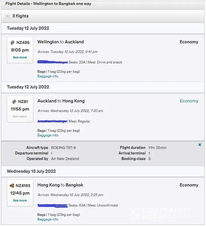 Air New Zealand flight - details below. I want my money back