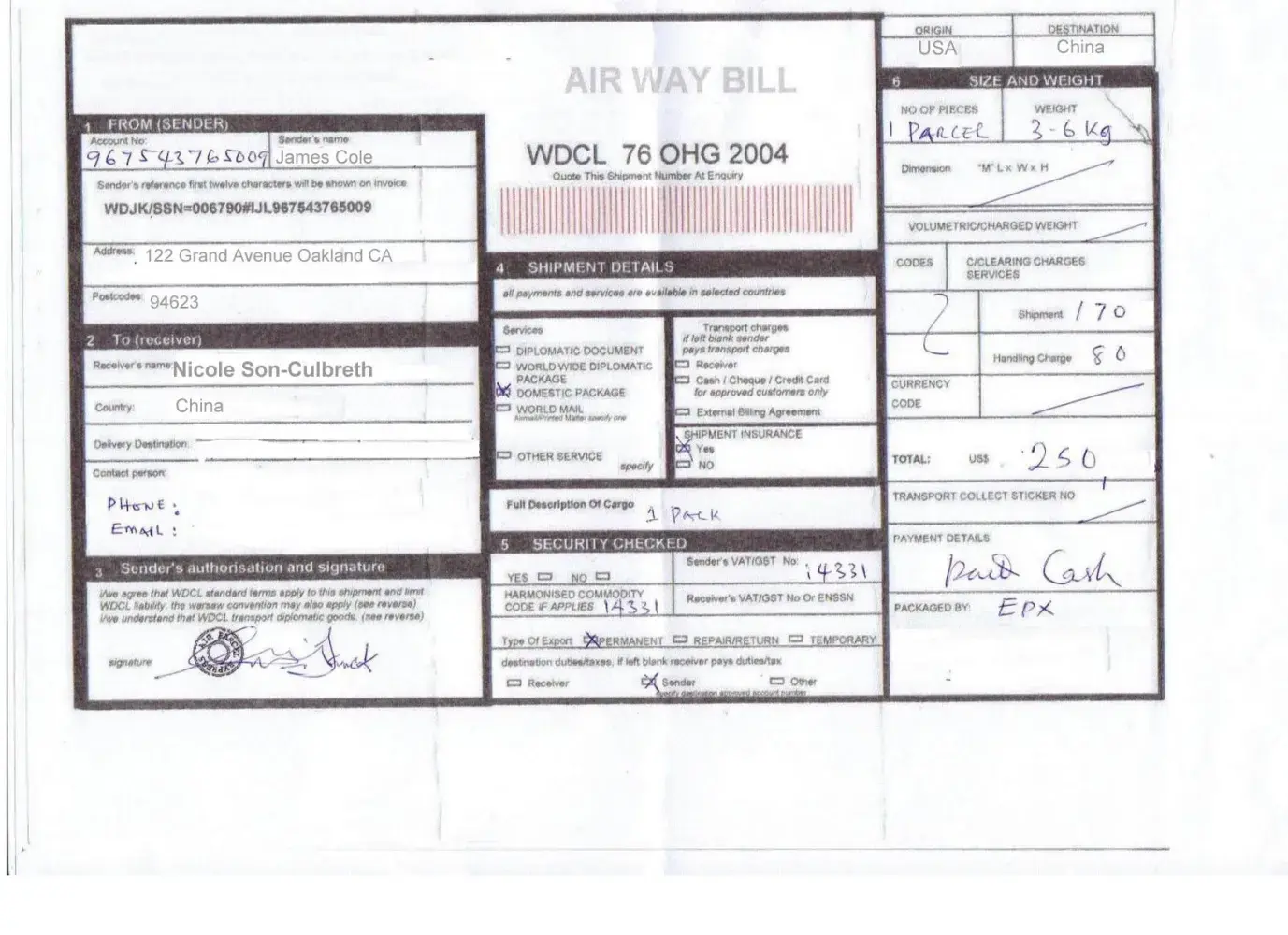 Air way bill fake