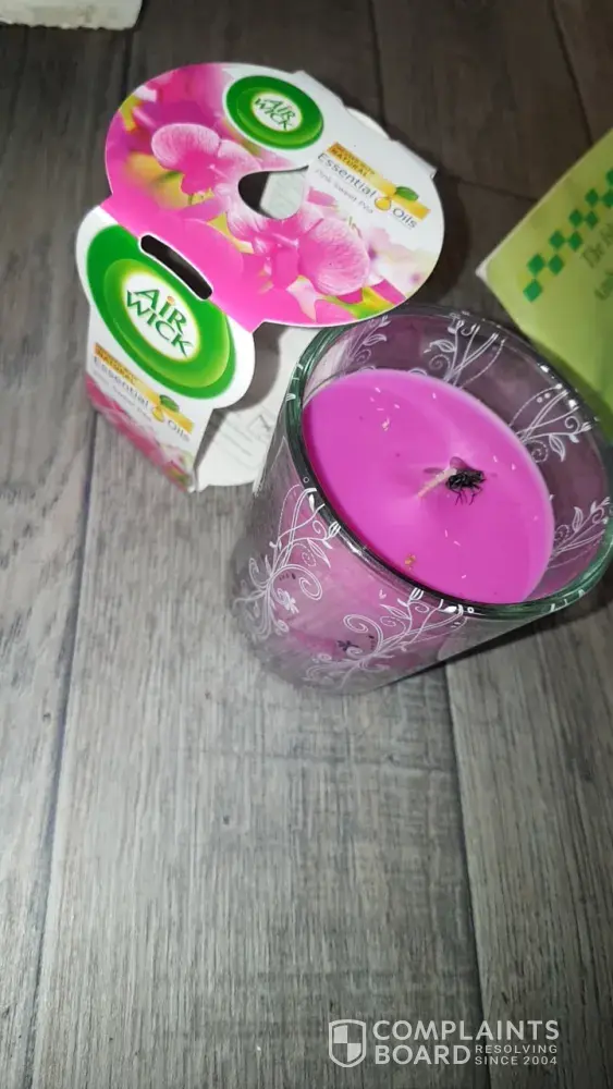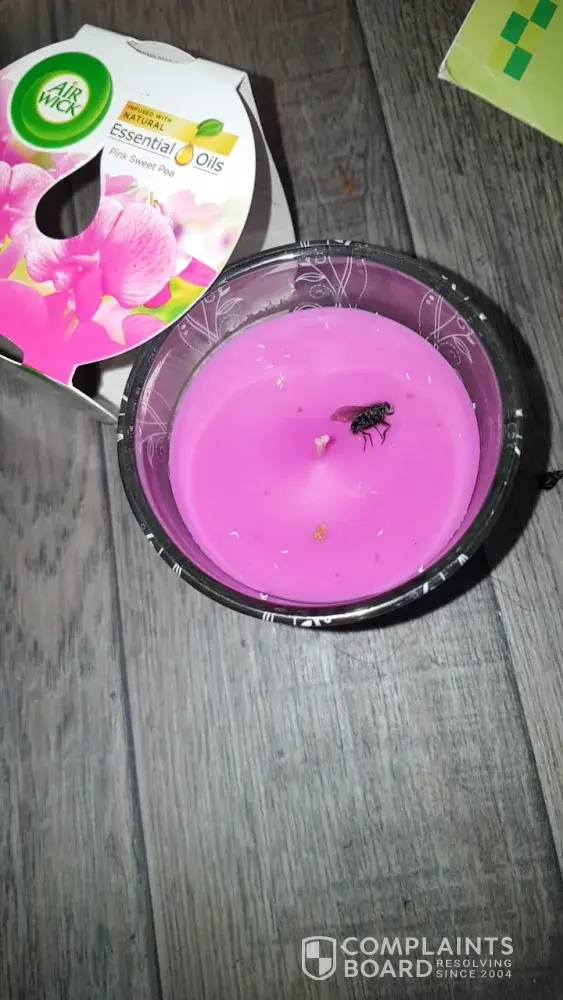 Bought a air wick candle didint check inside the candle intill I took packaging of when I got home and found a dead fly! I feel sick, pretty sure thoes are fly eggs too