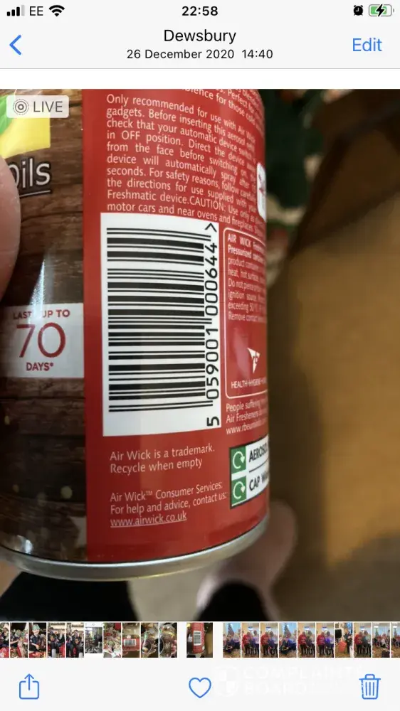 we used your 6 in 1 pink sweet pee aerosol the we purchased a few days ago, on using we found it chokes us and we cants top coughing this product is appalling and you may want to remove it from sale, we use other sprays and have not had this problem, it is the 240mil can, the date of incident was the 28th October 2020 we will not be buying anymore of your products.