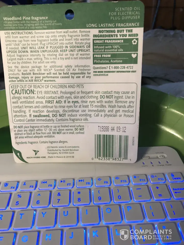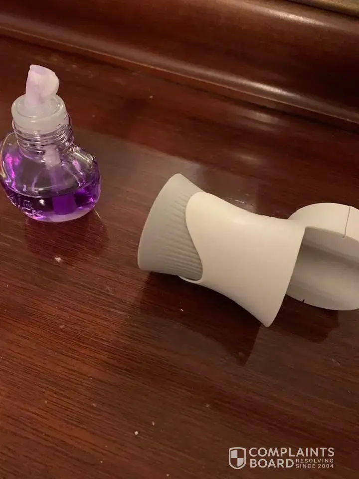 The two times I have used the Air Wick Plug In, the perfume container melted and spilled perfume all over, including my wood floor and outlet. This could have caused a fire, and my wood floor is ruined. I would like some compensation if not just a refund of two 3-packs please.