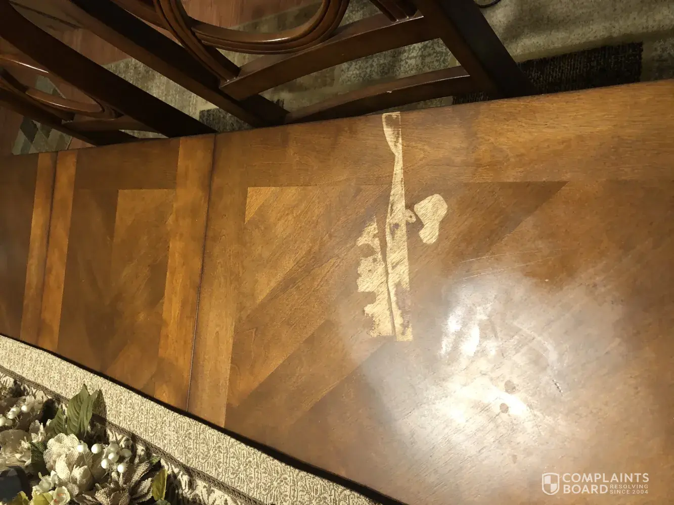 I placed an air wick on a piece of paper on my kitchen table, and it leaked and stripped the color off of my table. I had just recently purchased this table, and this is very upsetting to me. I provided photographs for you to see. Please kindly respond to my concerns.
