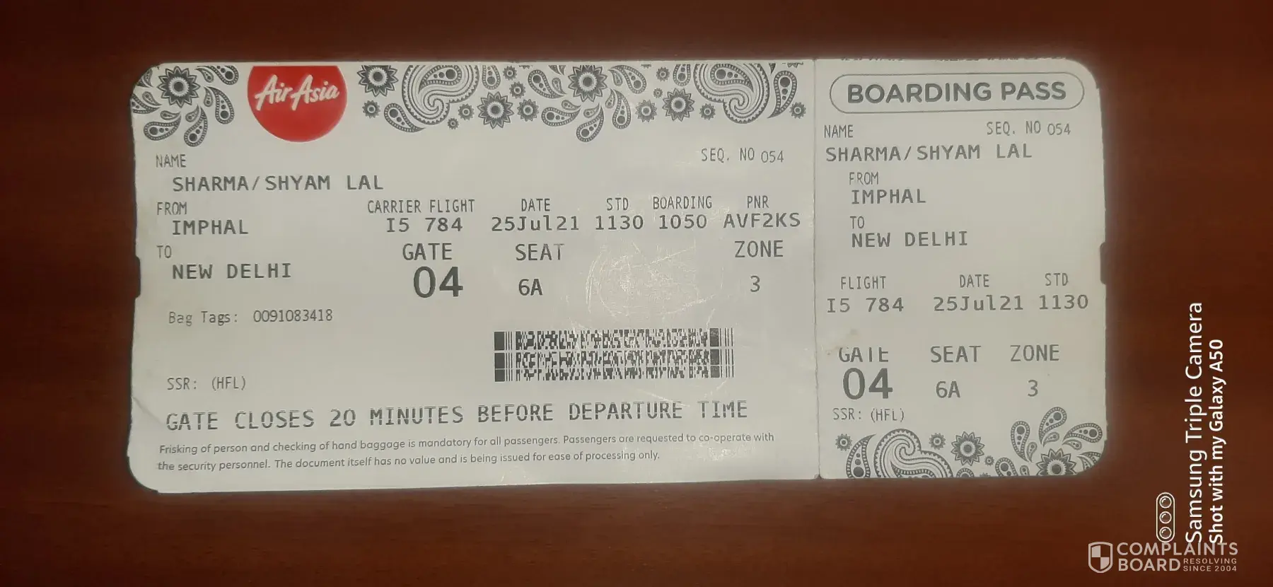 The Air Asia staff Ms. Baisakhi Ghosh also has given me the confirmation dully signed and stamped. Attached is the signed and stamped ticket from Ms. Baisakhi Ghosh for your reference.