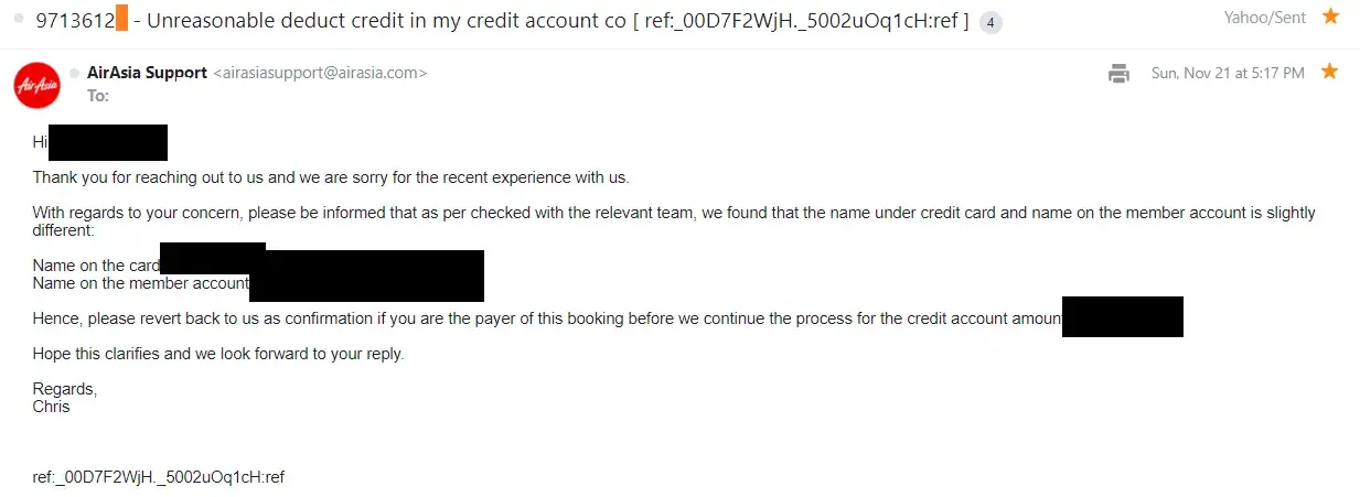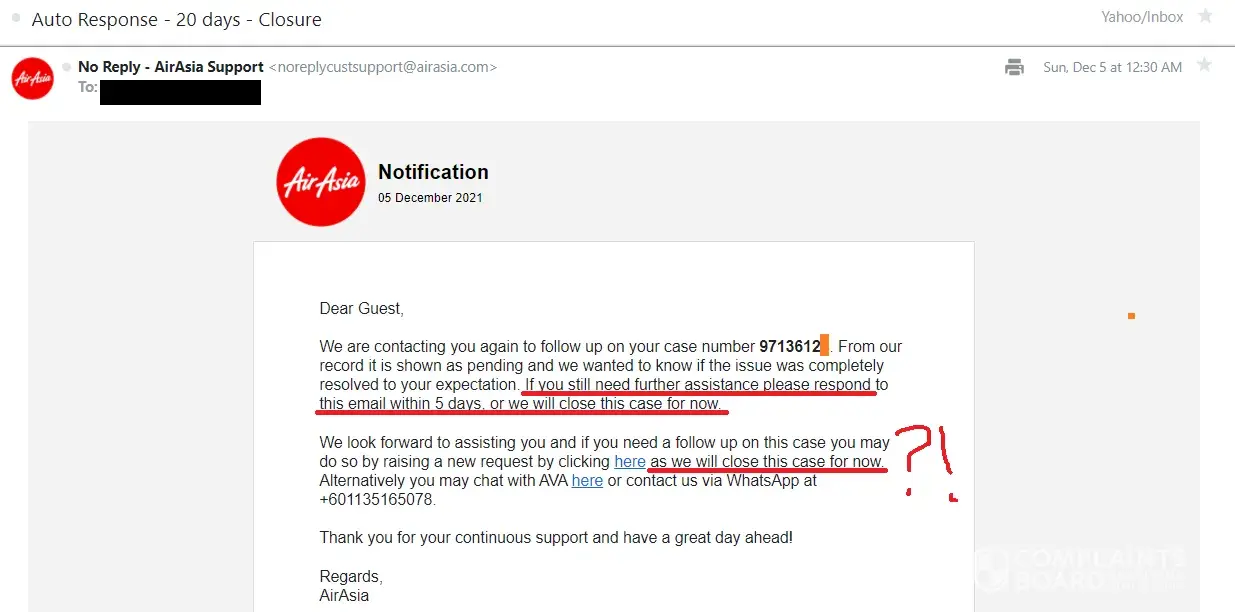 (2) their irresponsibility during handling of case [protected]) for us to get back the credit. I've raised a case to handle this credit request back on 19th Nov 2021, after few email communication, there are auto email triggered on 5th Dec to close my case. Firstly, case should be closed if 20days since case opening, however, from 19th Nov - 5th Dec took only 17days. Case just closed without settlement, and email communication was confusing (ask for reply within 5days but next sentence mentioned will close the case now). There are no reminder for us to respond to the case before the case closed.