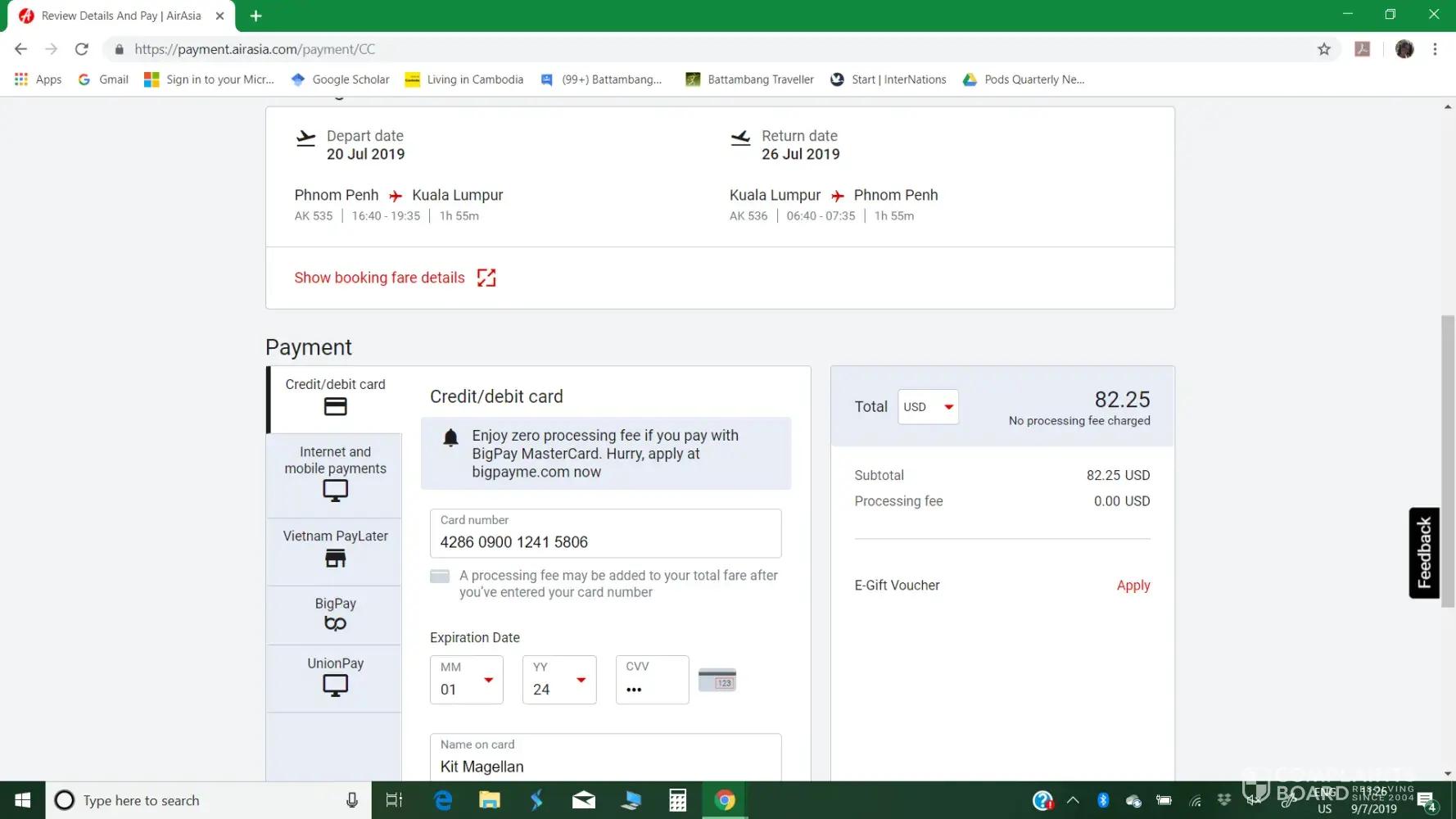tart the booking, and this time I was charged a fee for exactly the same fl=